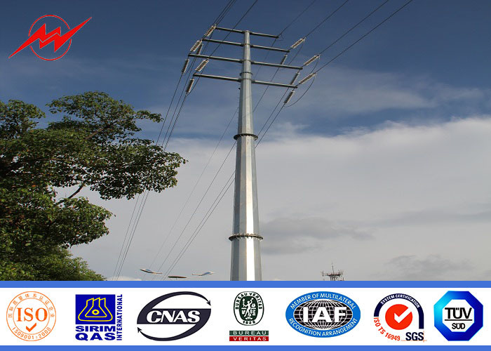 18m Columniform Galvanized Steel Pole For Transmission Line , Utility Power Poles 2