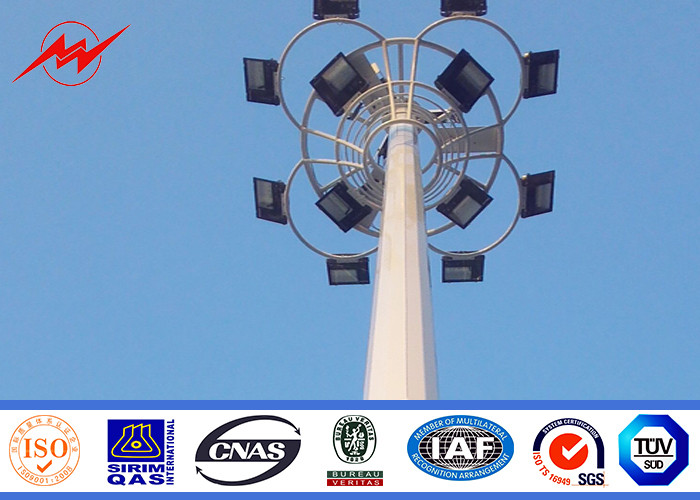 Powder Coating Flanged 20m High Mast Poles with 12 Lamps Wind Speed 30m/s
